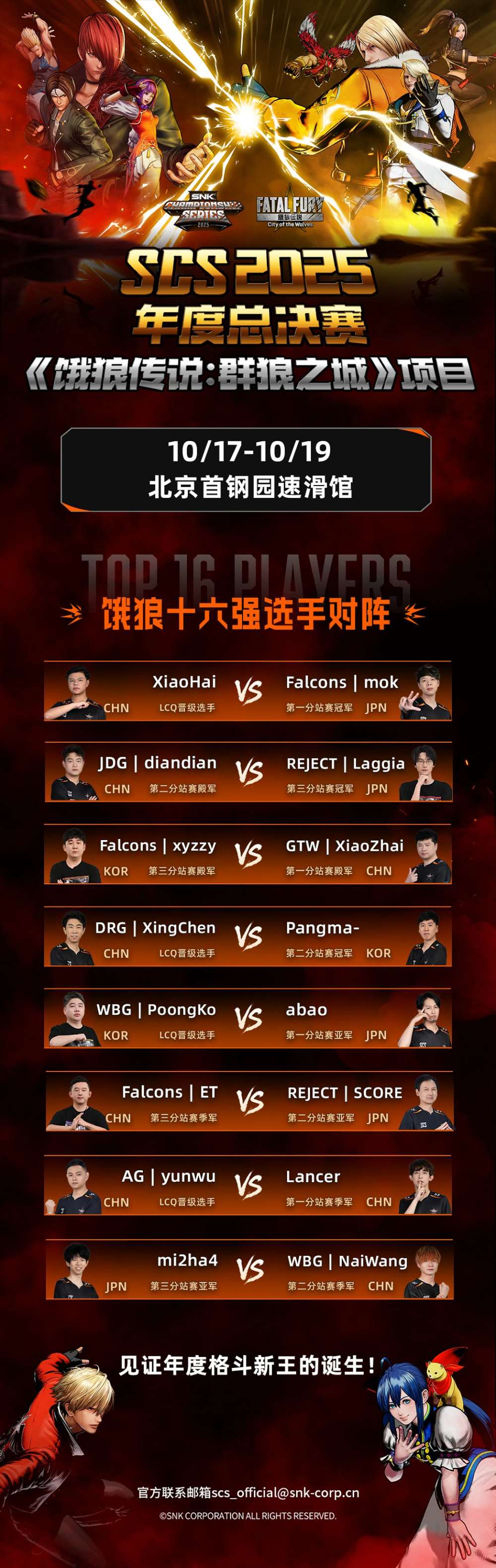 作为SNK在中国发起并运营的全球性官方赛事品牌,SCS 2025自启动以来,吸引了世界各地的格斗选手参与,赛事影响力持续扩大。