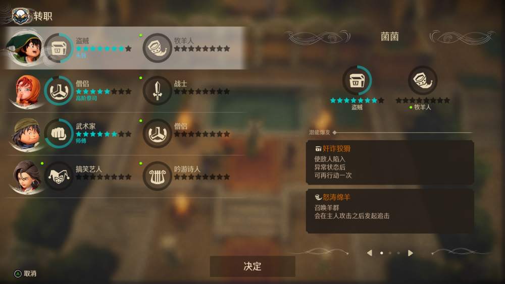 职业系统是DQ系列的特色之一,在本作中完成达玛神殿剧情之后可以进行转职,学习新的技能。不过技能与职业绑定,在转职之后无法继承之前学会的技能。从中期开始能够解锁双职业系统,如果有一个职业精通,另一个职业还会获得额外熟练度,又爽又护肝。而原版中掉率和肝度都让人抓狂的怪物职业系统,在本作中也变更为击败强力敌人后掉落的饰品。