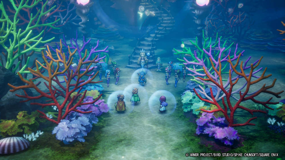 说到音效,本作与DQ3重制版一样由早坂将昭担任制作人。早坂将昭早在第一部HD-2D作品《歧路旅人》的开发中就已经深度参与了声音部分,而他对于声音表现的追求更是在DQ3重制版与DQ1&2重制版中体现得淋漓尽致。重制版除了交响音源以外,在环境音效上有着全方面的强化。在河边能够听到水潺潺流动的声音、微风拂过树叶、吹起风沙、划过海浪,乃至沉入海底时那种空旷寂寥的感觉,在环境音效的表现上可说是可圈可点。这些细节不断累加,最终量变产生质变,对玩家在游戏世界中的沉浸体验带来了巨大的影响。