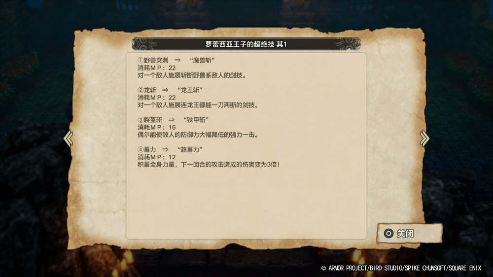 去年发售的DQ3重制版在战斗玩法上没有太大的变化,比较明显的就是新增了特技与全新职业驯魔师。本次DQ1&2的战斗系统在沿袭了传统DQ指令回合制系统的同时,加入了一些全新的要素、增加了战斗的体验。首先和DQ3一样增加了特技部分,这不仅使完全不会使用咒文的萝蕾西亚王子增加了战术变化,单人踏上勇者之旅的DQ1主角的战斗也充满了更多变数。此外,除了升级以外,玩家还可以在游戏世界中找到许多记载着特技与咒文的卷轴,使用之后即可让角色立即学会记载的技能。尤其是在DQ2中,要根据玩家对角色的定位来选择让哪个角色学习相应的技能。最好笑的是DQ系列经典擦边要素“啪呒啪呒”(pafupafu)不仅可以让女角色学习,也可以让萝蕾西亚王子这个典型的力量型筋肉角色学习,使用时能用自己壮硕的胸大肌将敌人狠狠夹住,造成可观的伤害。