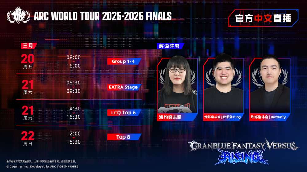 更多赛事详情:https://www.arcsystemworks.asia/awt2025/finals/