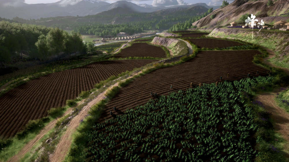 借助虚幻引擎5的支持,《烽沙》在景观构建和模型精度上展现出了显著的优势。无论是拉远视角鸟瞰庞大城邦的宏伟远景,还是推近视角观察市井民生细节的近景特写,游戏都提供了出色的视觉反馈。《烽沙》的画面表现力不仅体现在宏大的自然景观和城墙要塞上,更体现在对古代基层人民生活的真实刻画。游戏在微观层面上埋设了极具生活气息甚至带有黑色幽默的细节。例如在近景观察时,可以清晰看到民夫们建筑、劳作甚至排泄等生理行为。这些细节不止是视觉点缀,而是深度绑定了游戏玩法的相关系统——民夫的排泄物可以收集起来用于农田施肥,到了战争时期更是可以熬制成“金汁”,作为守城器械的弹药倾泻在攻城敌军的头上。