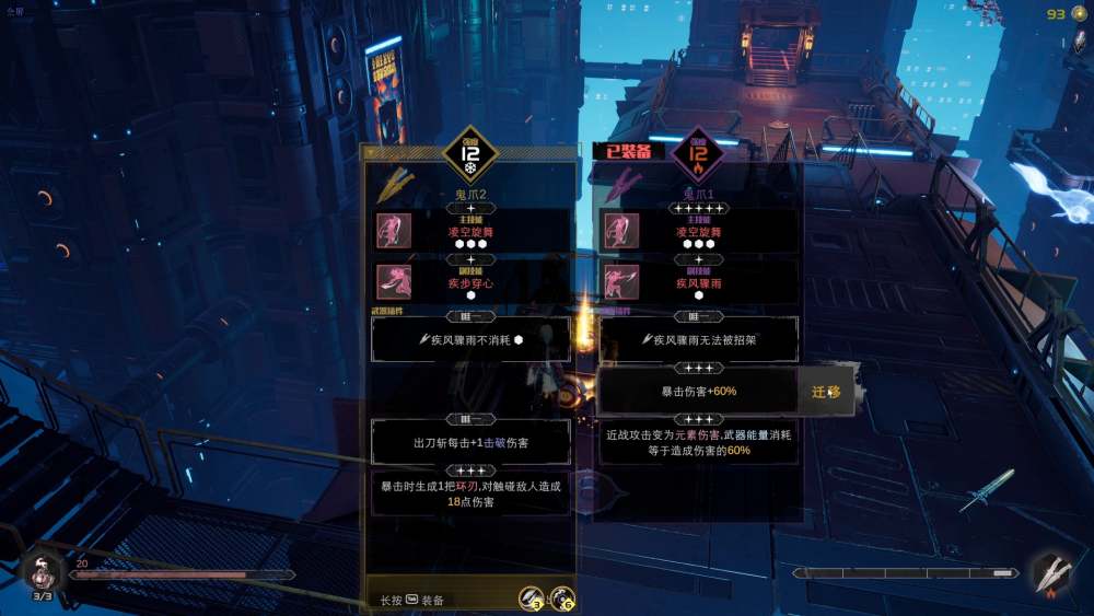 作为一款包含 Roguelite 元素的游戏,本作在追求操作上限的同时,也兼顾了成长带来的爽感。游戏有意降低了时机判定的门槛,将重心向流派构筑偏移。每一把武器都能携带并替换两个主动技能,插件系统也支持跨装备自由组合。每一次轮回中获得的“业力”都将化为局外成长的养分,用于义体改造、芯片装配与装备库扩充。在不断变化的地图路径中,玩家还将邂逅诸如“吞金兽”貔貅等随机NPC,通过血量或资源的交易博取高额回报。死亡在《蝼蚁之城》中并非终结,而是通往更强形态的阶梯。