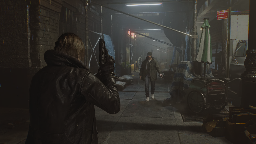 《生化危机》系列作为一款恐怖动作游戏,一直以来都在做恐怖游戏和动作游戏之间的平衡和取舍。在近年的《生化危机》续作和重制版中,往往是通过收紧初期资源来逼迫玩家潜行增加压力,在中后期便可以勇敢突击。《生化危机 安魂曲》的体验设计倒是不太一样,里昂基本是从开始就可以爽射大枪,而格蕾丝即便到最后也需要注意潜行。整个故事通过两者故事的交接,可以保持两种玩法体验的平衡,也不至于太割裂。