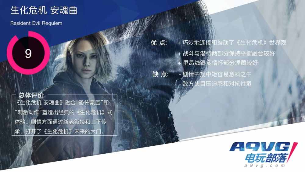 既要又要的难题,往往是时代经典系列作品必经的发展之痛,尤其对于即将迎来三十周年的《生化危机》系列更是迫在眉睫。极具动作性的高分经典重制频出,追求恐怖体验的革新新作在前,作为第九代正统续作的《生化危机 安魂曲》如何推陈出新?A9VG此次参与了《生化危机 安魂曲》正式版的先行评测,将引领各位“重返浣熊市”,唤醒记忆中最深的恐惧。